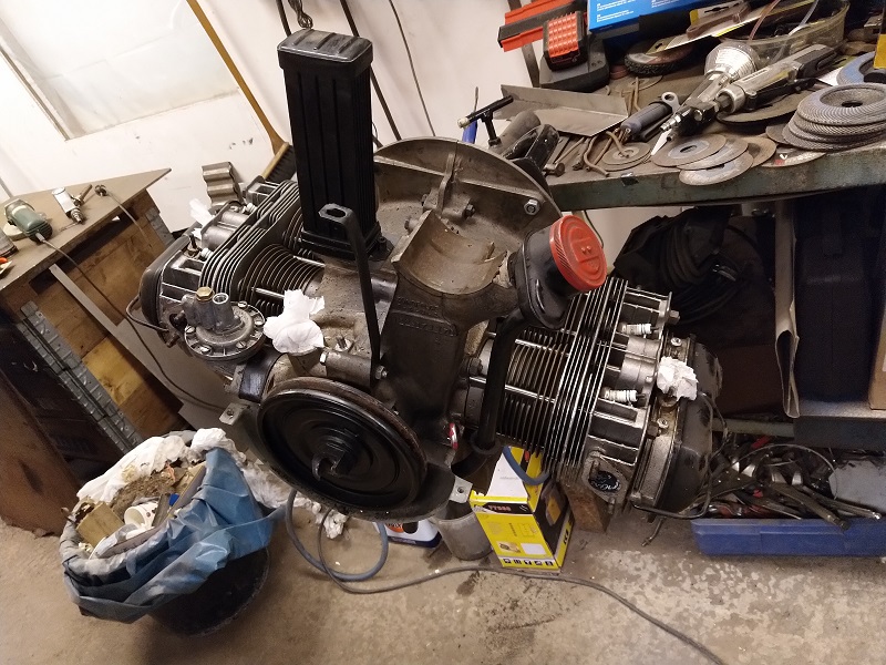 Ska även i samma veva leta reda på alla andra saker som måste till för att göra motorn redo för ett fortsatt liv i "Binzen". Är ju en del saker som måste till, till exempel generator, fördelare, värmekammare, fläktkåpa med tillhörande termostat och spjäll, undre plåtarna, mm, mm.