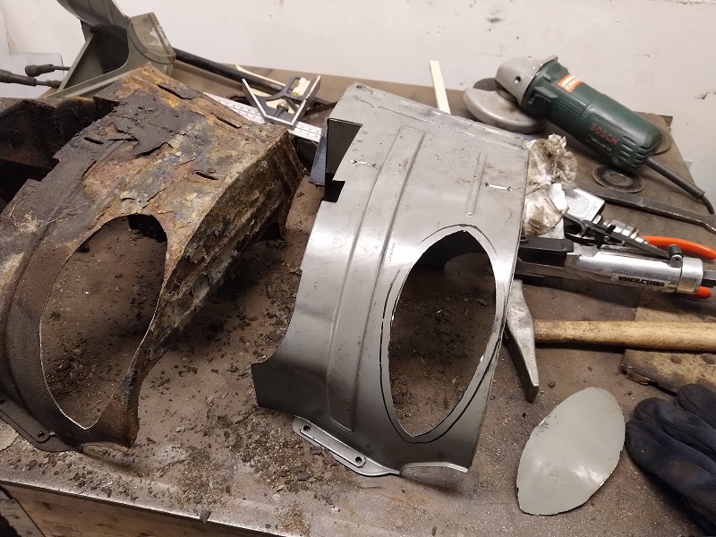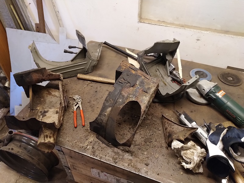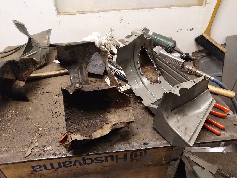 Gjorde som så att jag sågade bort strutarna med sticksågen, och därefter rensat från punktsvetsarna så att det blev bara enkelplåt kvar.