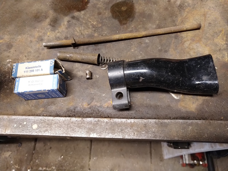 Men vid skarven mellan den främre och den långa stången så visade det sig att låshålet i den långa stången som jag köpte från UK för ett par år sedan var felborrad! Så för att korrigera det så skulle jag behöva göra ett nytt stopphål, och med det lyfta ur växellådan igen...
