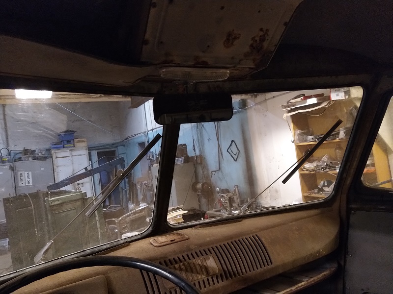 Så jag gick till min lilla hög med grejer från Cheva -56an jag har liggandes i hörnet av garaget, visste att jag sett en "universal" backspegel som suttit på instrumentbrädan på denna Raggarbil, så fel på denna blev nästan rätt på "Binzen"  ICQ/bo