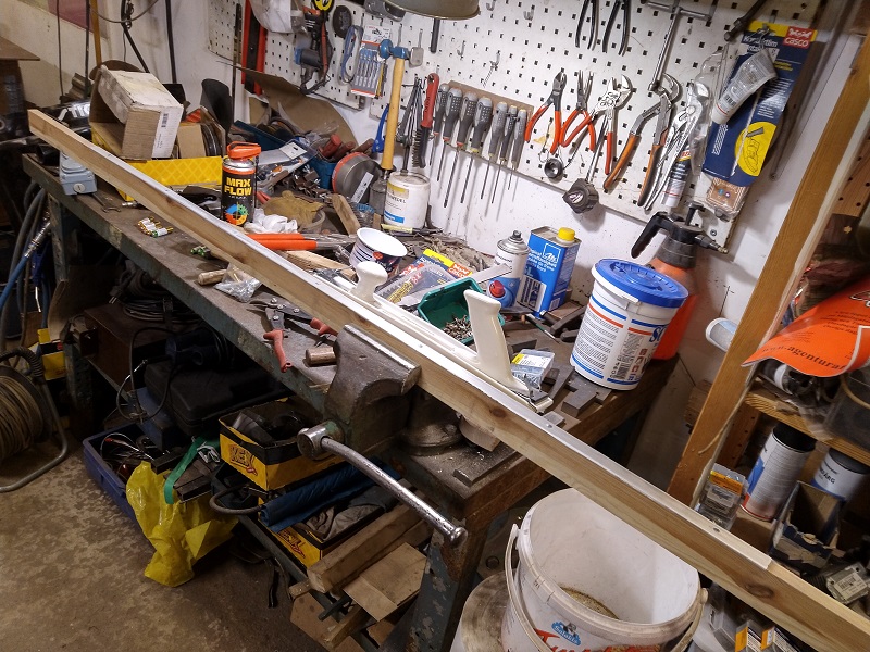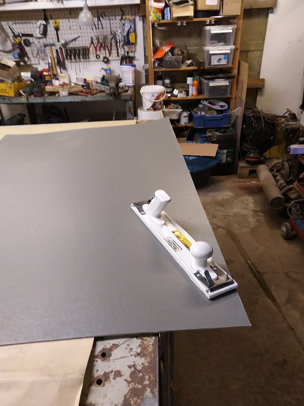 Så då var ju saken biff! Var bara att plocka fram en lagom lång träbit som underlag, sedan leta reda på en jäkligt rak metallbit i lagom längd, i mitt fall så blev det en aluminiumlist som jag tidigare även haft som "mothåll" vid svetsning av dörrskinnet.