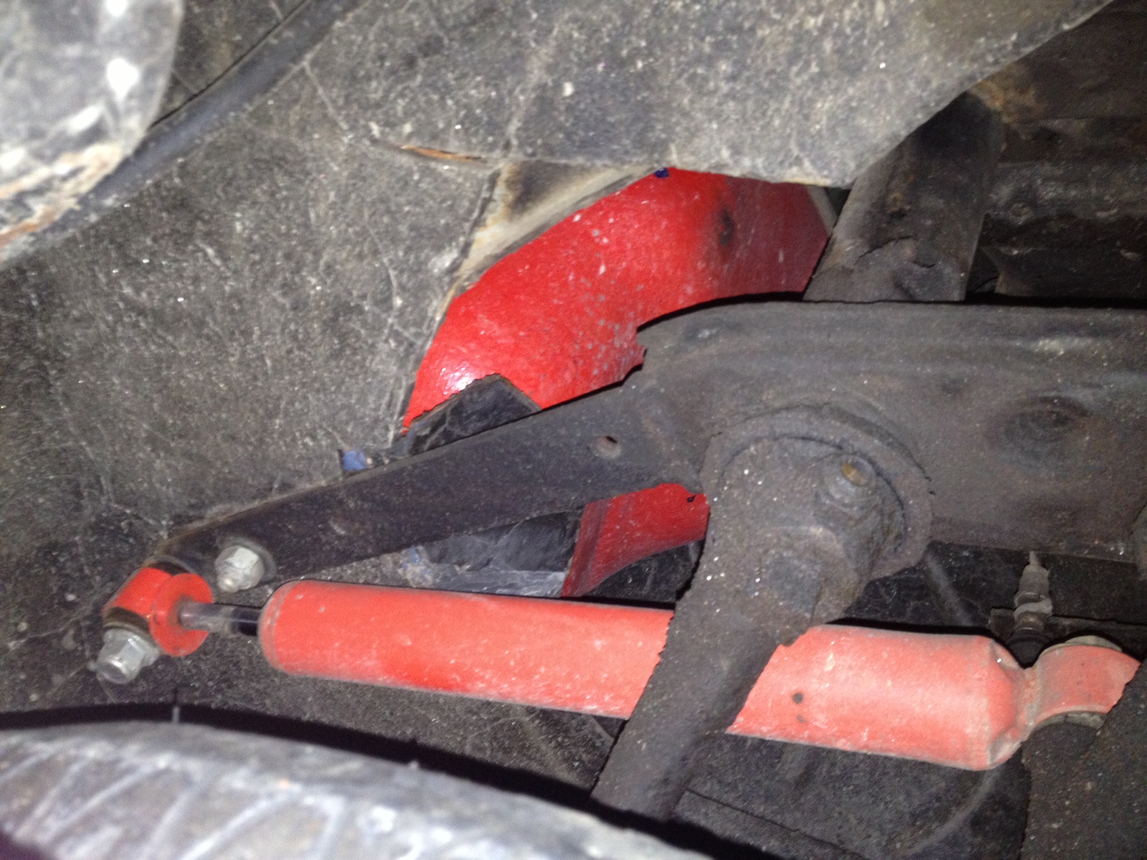 Har efter några år bestämt mig för att få ut bilen på vägarna igen. Köpte bilen för några år sedan och körde hela sommaren efter det hamnade den i garaget av olika anledningar. Framvagnen ska vara kortad 2" och har nu tänkt montera sänkta spindlar för att få ner bilen lite mer. när jag lyft upp uppenbarades tyvärr att man kapat en jäkla massa i karossen samt byggt om stötdämpartornen på kanske inte det snyggaste sättet. Man har gjort likadant på båda sidor tyvärr och undrar mest vad besiktningen skulle säga om man körde in med bilen i dagsläget? Självklart ska jag fixa kapningarna men tiden är lite knapp och garaget inte lämpat med svetsning för tillfället. Känns jävligt dumt att man inte sett det tidigare men följde tidigare ägares projektråd och då såg inte karossen ut på det nuvarande sättet.