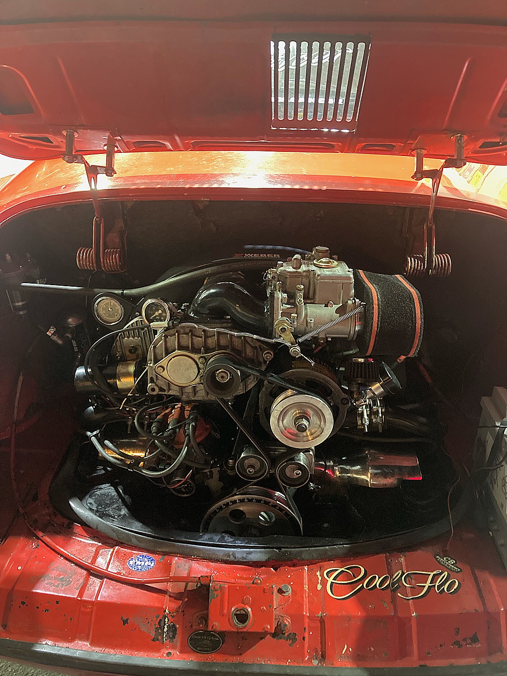 I veckan fick jag lite tid att riva ner det och montera en org förgasare. Motorn låter hur bra som helst, och kompressorn kärvar lite när men drar runt den.