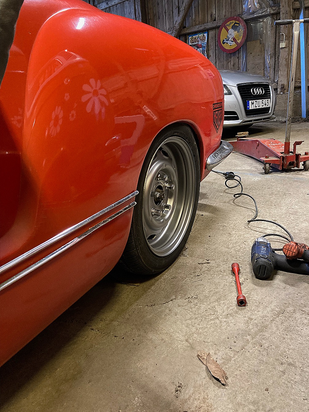 Sen testade jag ett par breddade plåtfälgar jag hade liggande.