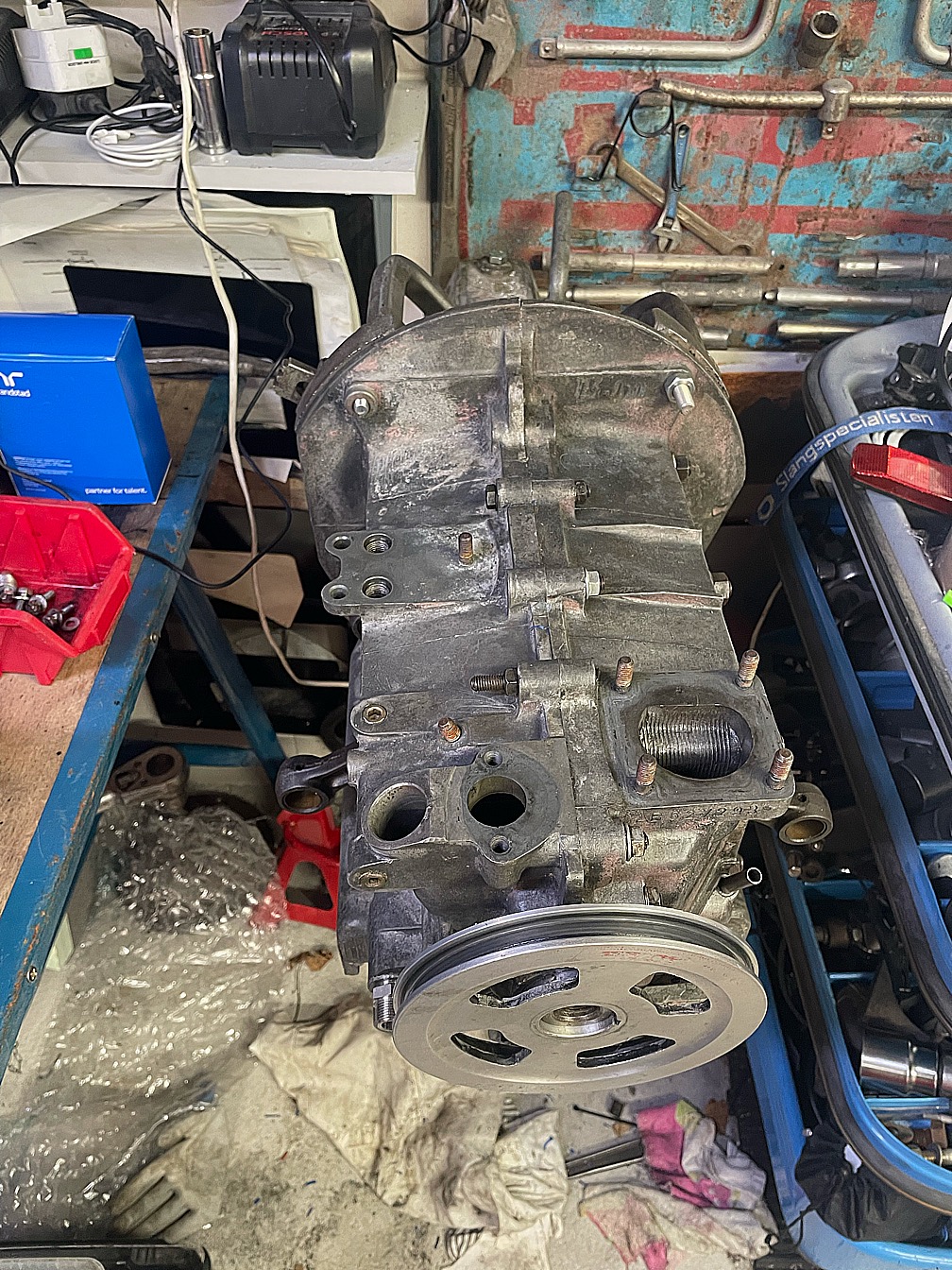 Jag skulle endå byta lådan som har läckt olja ett tag så motorn var endå tvungen att gå ut.