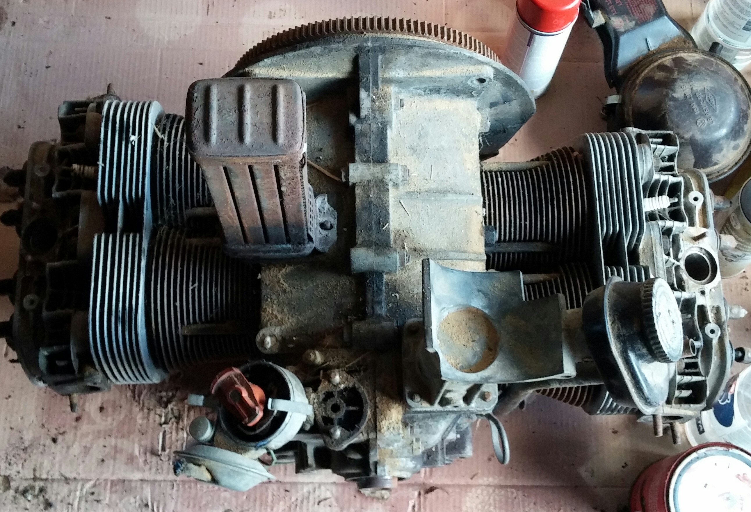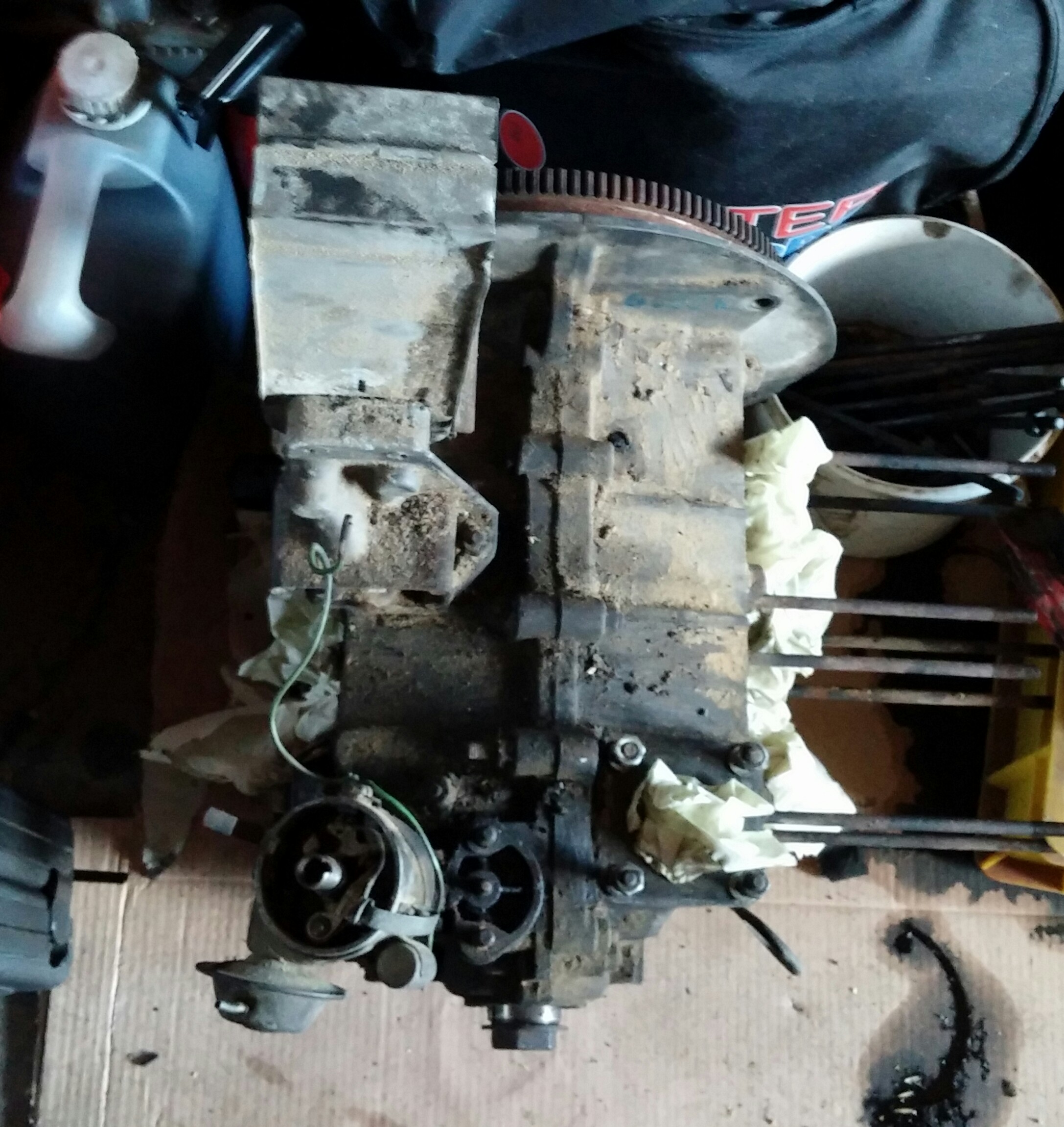 Toppar är skitiga men har inte sett några sprickor. Insug finns men saknar förgasare