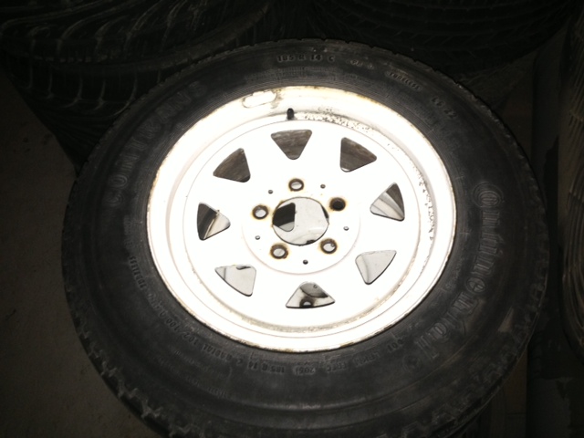 Ett set med whitespoke 14 tum, slitna c-däck