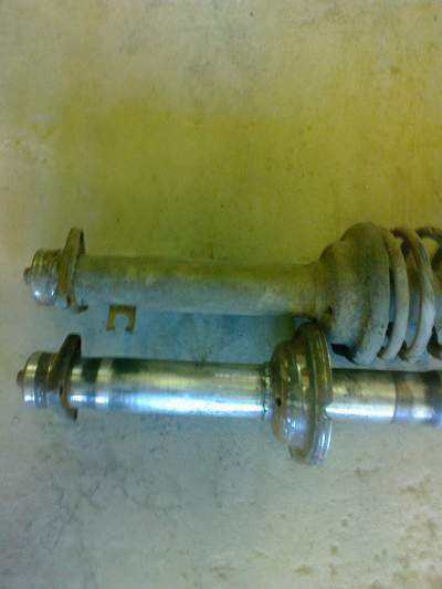 Jag vill ha fjädringsväg, därför kortade jag gummistopparna lite, slipade ett spår i gummistoppet cirka 30 mm ovanför den "krage" som håller hylsan/dammskyddet, slipade upp hylsan/dammskyddet och trädde den på gummistoppet så allt hamnade 30 mm längre upp.
