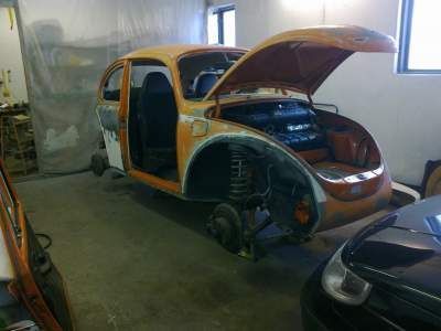 Med de förutsättningar som finns i garaget så blir det inte fullt ut utställningskick på lacken, men mer än dugligt för dagligt bruk, han är riktigt duktig, och bra mycket billigare än normala billackerare.