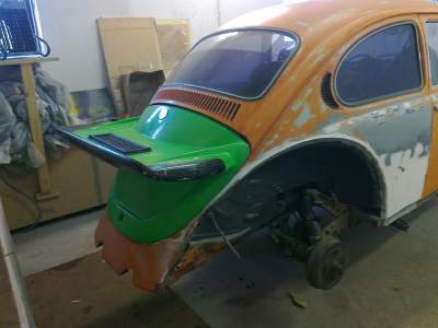 En annan begagnad har köpts in, och lagats upp plåtmässigt, så bara den får lite etsgrund och grundfärg/lack på sig så ska den nog funka för att hålla väder och vind ute.