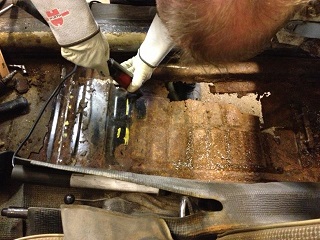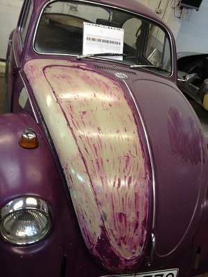 börjat ta bort den gamla färgen med"biltemas färgbortagare"