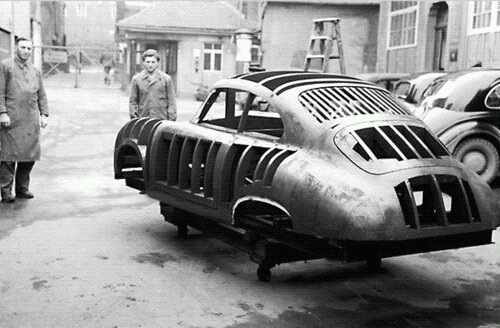 Snoddas poserar stolt i Bollnäspolisens garage 1954 med sin före detta röda 356a. Skattemyndigheten krävde snoddas på 25 000 riksdaler i restskatt, pengar som snoddas inte hade, vilket resulterade i att dom beslagtog hans Porsche, värderad till 20 000 riksdaler