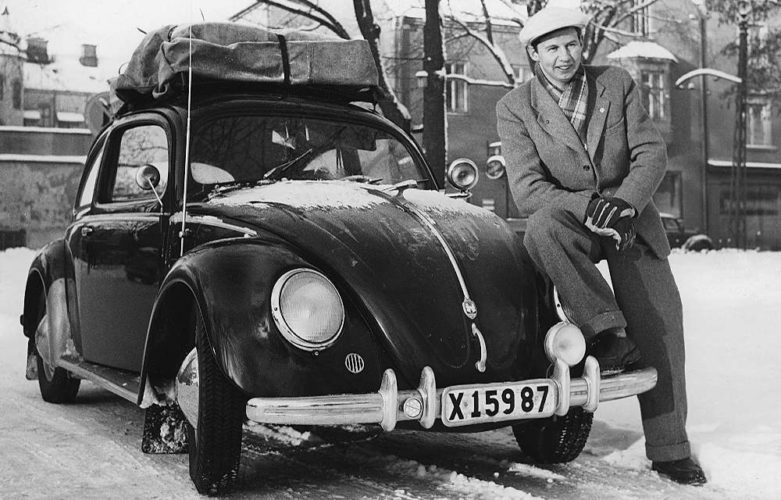 Herr Hansén från Mölle har skaffat sig en rullande sommarstuga. På bilden ses mästaren till verket. (ur VW forum 1962)
