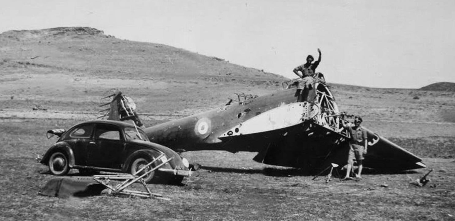 Det finns inga träd på bilderna, men de är nog inte heller tagna i nordafrika. En kvalificerad gissning är att det då är ett plan som blivit nedskjutet i Grekland, någon gång under sensommaren/hösten 1941.