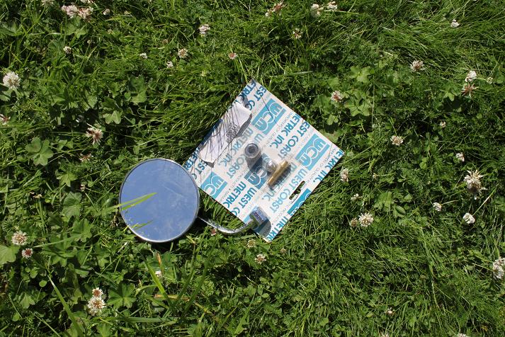 backspegel med ny monteringssats nopprig arm på spegel 100:- SÅLD!