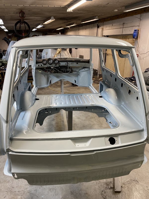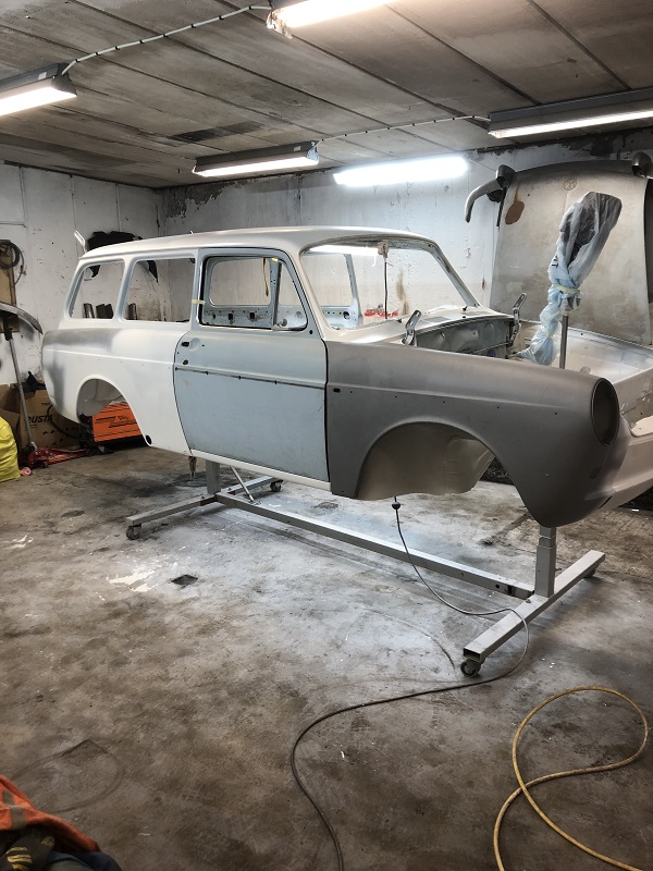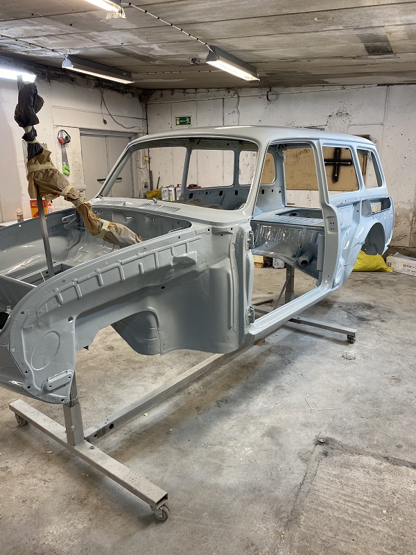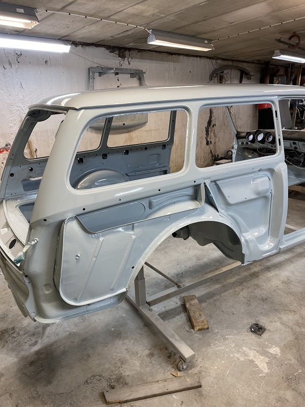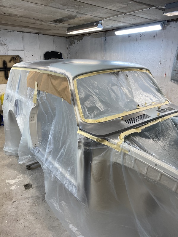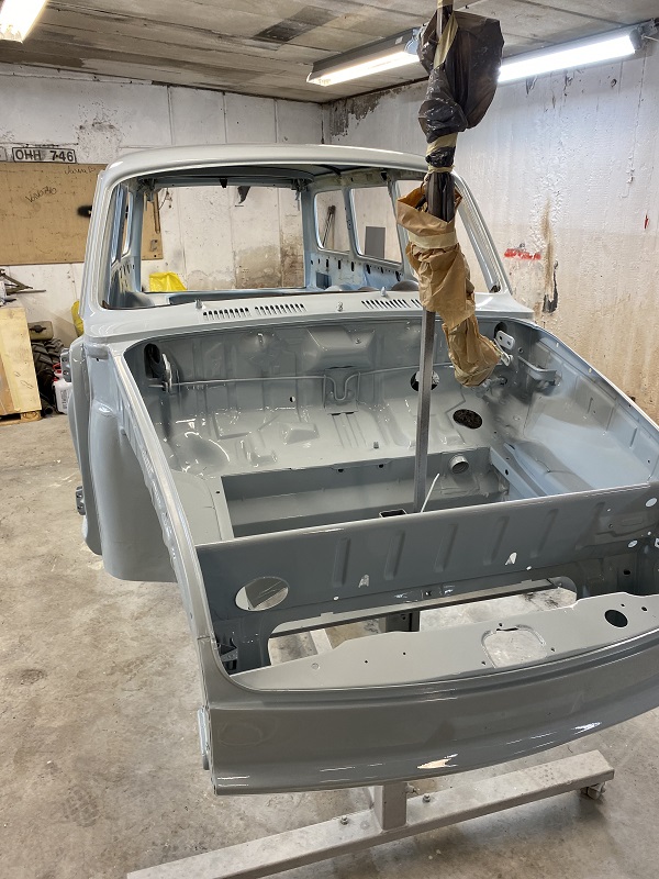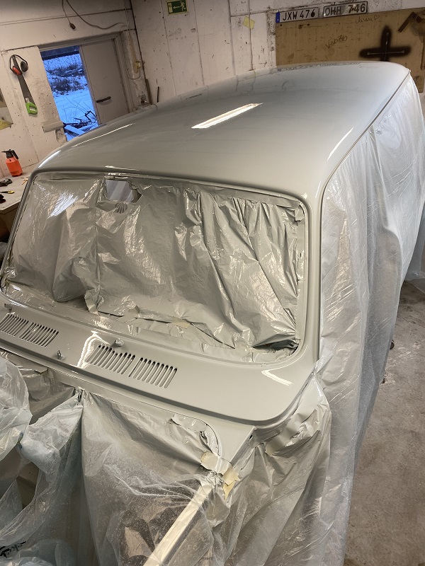 Fortsatte att lacka klart karossen, gjorde det i två steg, invändigt, under först sedan resten på "utsidan".
