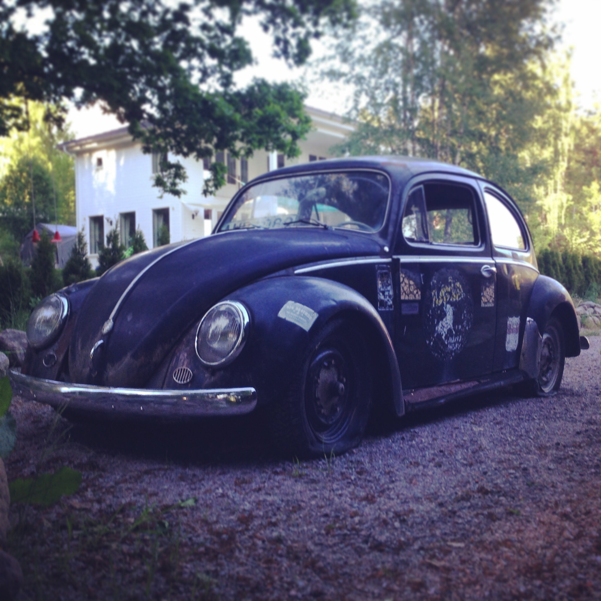 Bilen är en VW 1200 typ 1, årsmodell 1959, alltså sista modellen med blinkerspil.