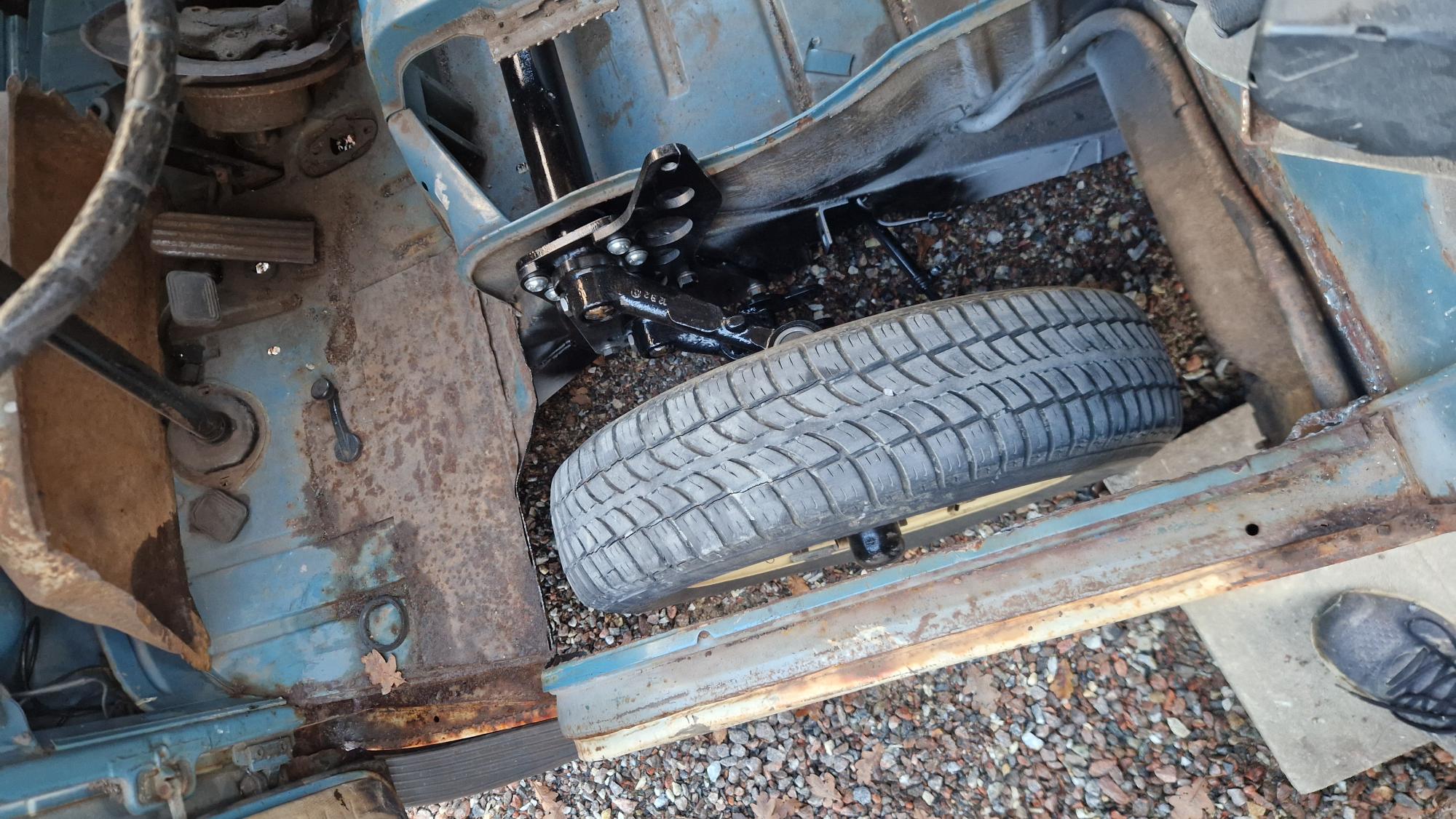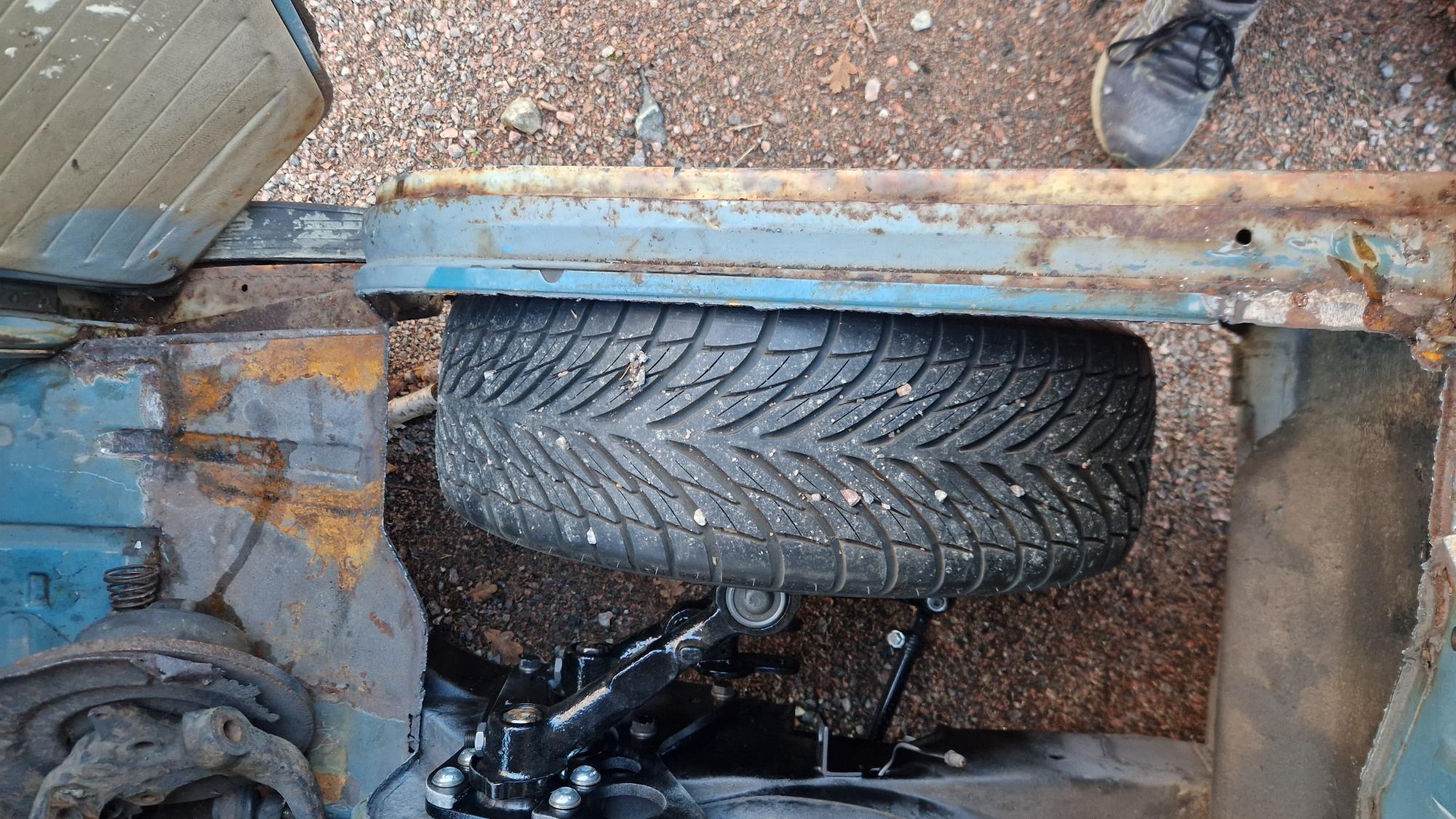 Det stora att se över nu, det blir att hitta rätt hjul fram för att kunna bestämma höjden ovan mark på bilen.