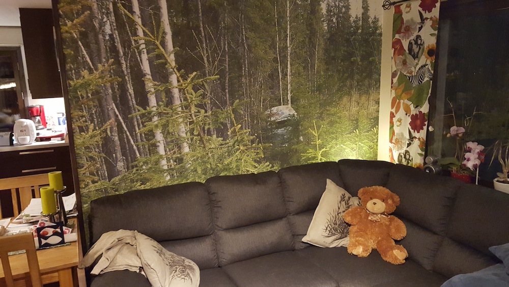 När man renoverar hemma och tapetserar så säger frun, - Jag vill ha ne skig i vardagsrummet. Letar upp en bild med ett bussfynd jag fotat, printar fototapeter och klistrar upp. Konst? Ja för mig iaf ICQ/ag