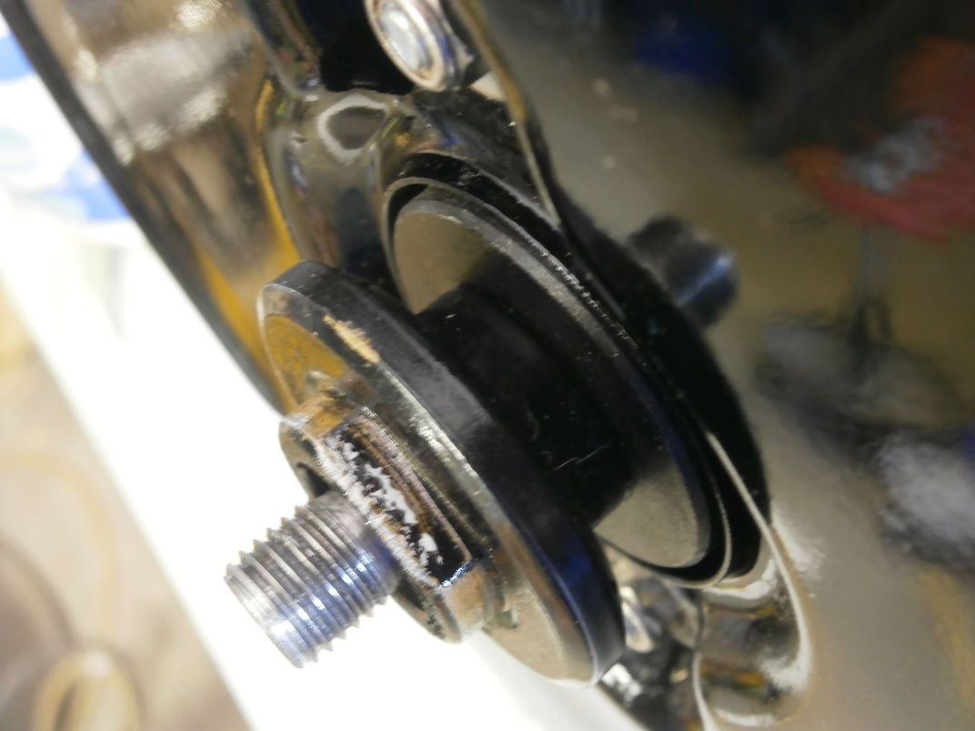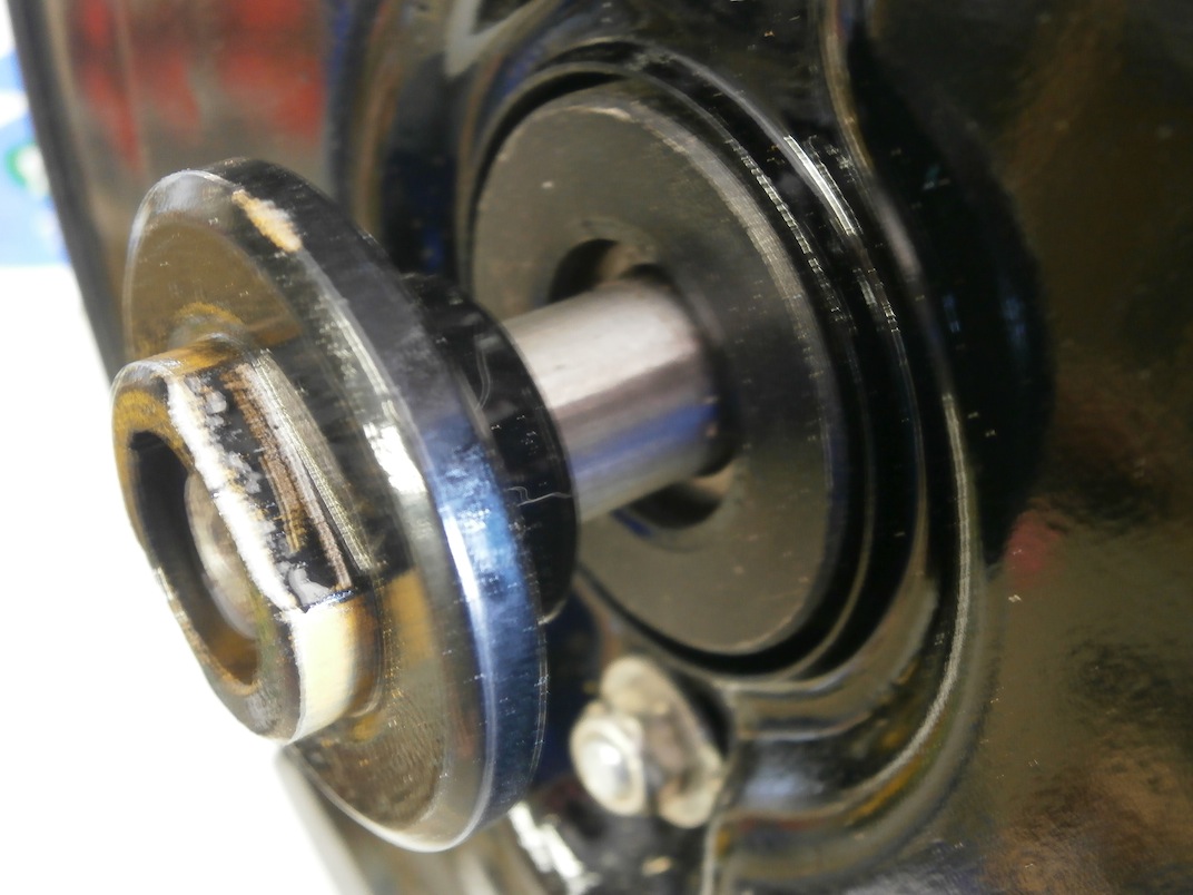 Ser inte rätt ut på bilderna, axeln borde nog ha ett steg som "hubben" skall stödja mot.
