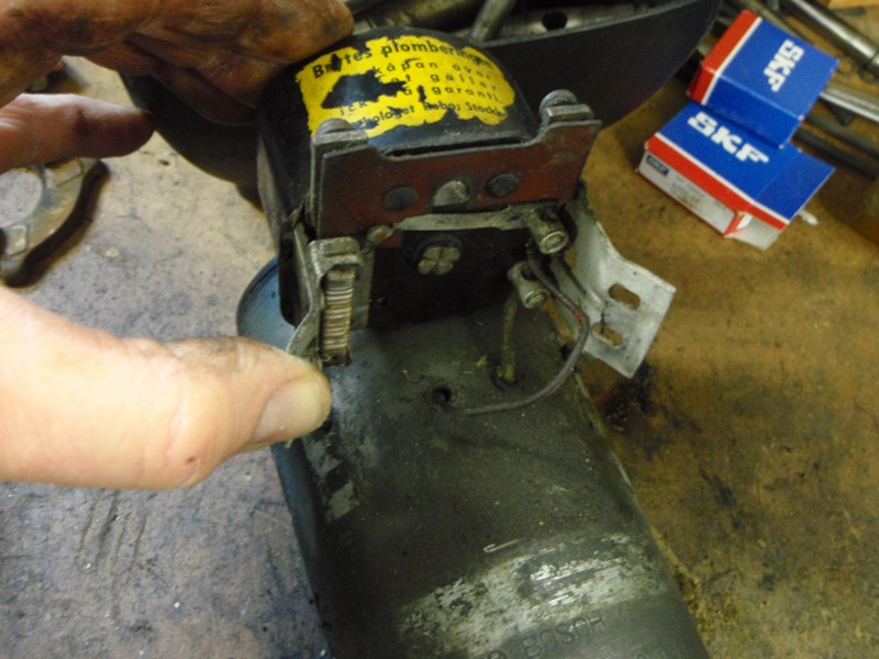 Så här såg det ut på min -49:a när jag rev generatorn. Den korta som går till kolet är vit eller grå och den längre är mörkröd.