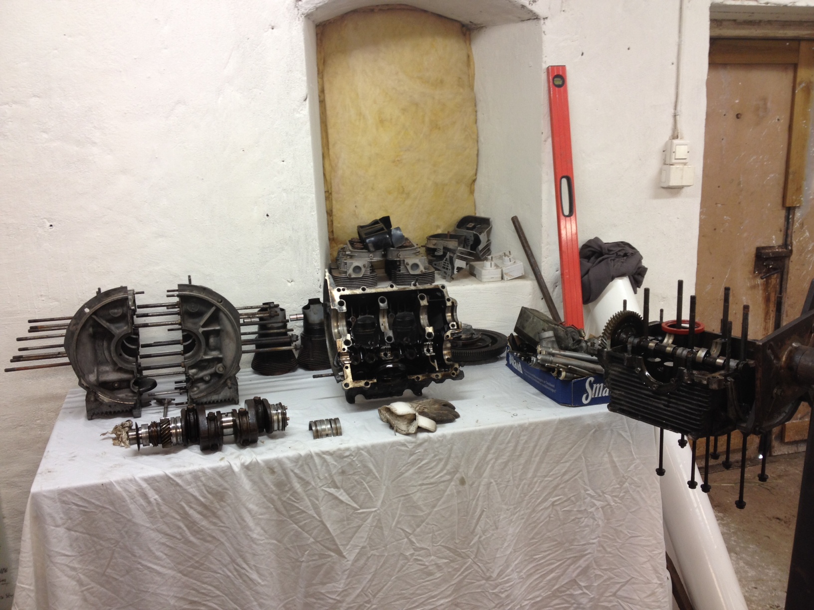 Jodå,man arborrade åxå.Många gånger så fräste man av 1 mm i delningsplanet på vevhushalvorna och sen så arborrade man till ny std dim.Men det förde med sig andra jobb eftersom man då måste arborra lägena för kamaxeln + ta upp hålen för oljepump,remskiva och läget för packboxen bakom svänghjulet.