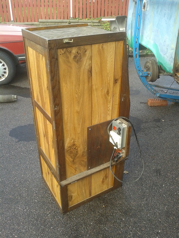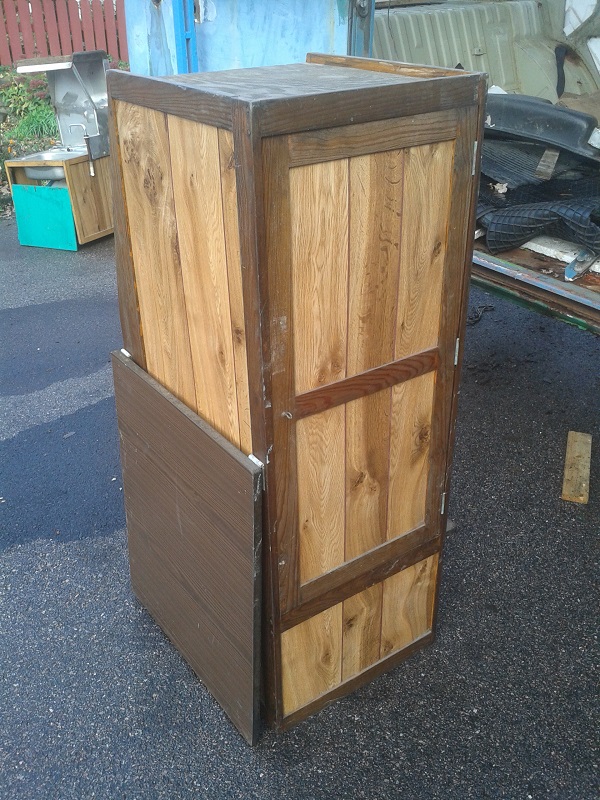 Ett stycken skåp/garderob. Suttit i Bay-buss. Troligen ett hembygge, säljer den därför billigt. Bättre att den kommer till användning än att köra den till tippen. Får man 200?