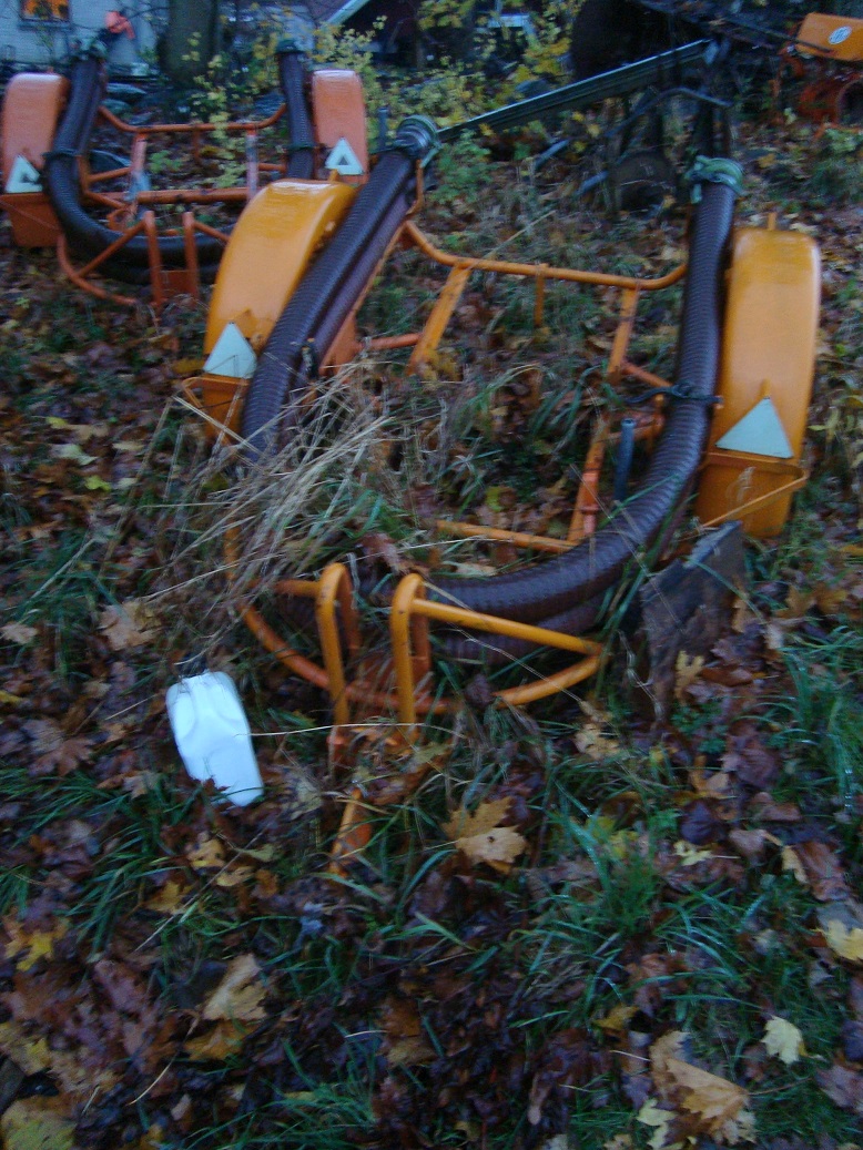 Det är nog så att det står flera sådana här kvar ute på olika brandvärn på landsbygden och på skärgårdsöar. Då kan dom vara försedda med vanlig koppelhandske, eller anpasade för att dras för hand eller av traktor eller fyrhjuling.