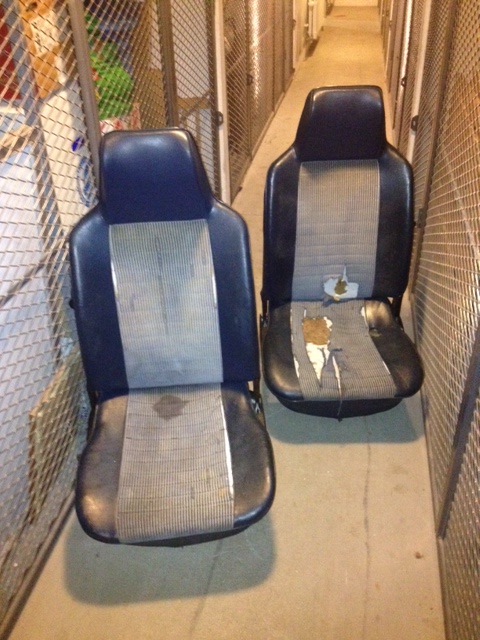 Stolar som suttit i en 1303s 1974. baksätet är fint, passagerarstolen ok, förarstolen rätt så sleten.