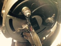 Sen märke jag en sak, generatorskruven som kabeln fästs i är något längre än förra generatorn vilket gör att den ligger mot plåten framför generatorn.