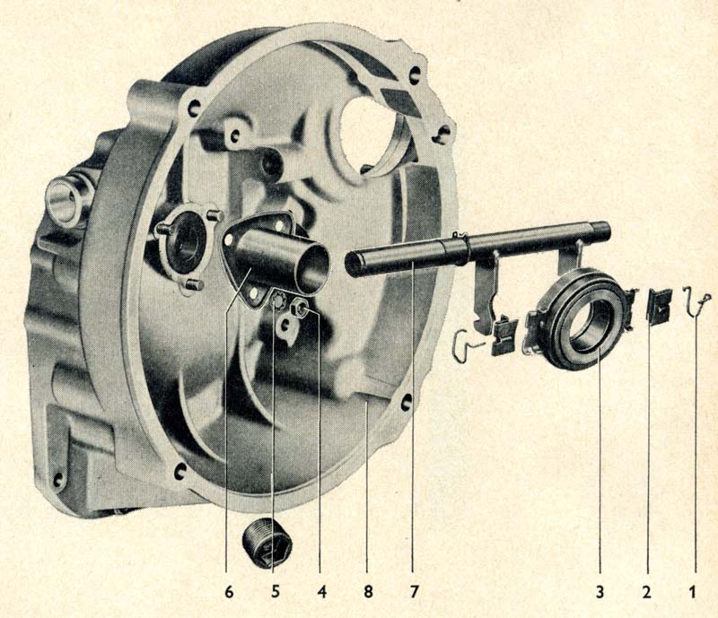 Borde se ut så här i en 71:a, inga öron eftersom det bakre fästet kom i samband med att man kunde få Typ 4 motor (aug 71 årsmodell 72) men hylsa för urtrampningslagret som infördes augusti 70