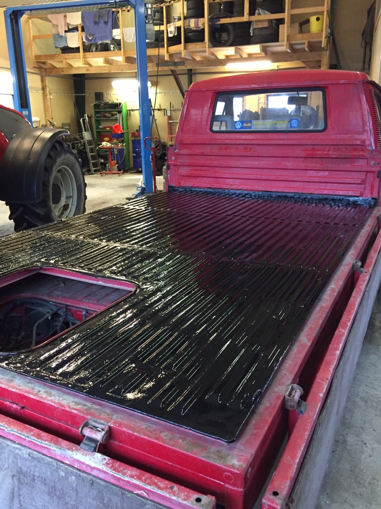 Fortsatt med rostlagning av flaket. Flakplåten blev stulen i nått garage. Funderar på att snickra ihop en trätrall. Även lämmarna skulle kunna få ribbor. En idé är att jag skulle ha en vedeldad ugn på flaket och då skulle det se snyggt ut.