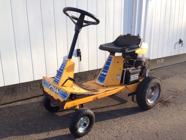 Hej har en trimmad stiga åkgräsklippare till salu, riktigt rolig men farlig maskin går lätt upp på backhjulen