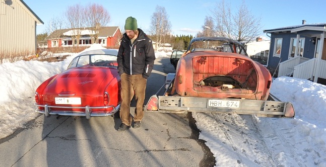 En -57 karmann ghia nysåld i jämtland. Räddningsbar men ej komplett.