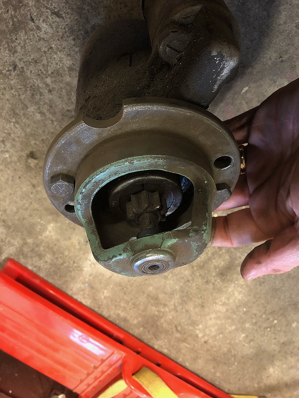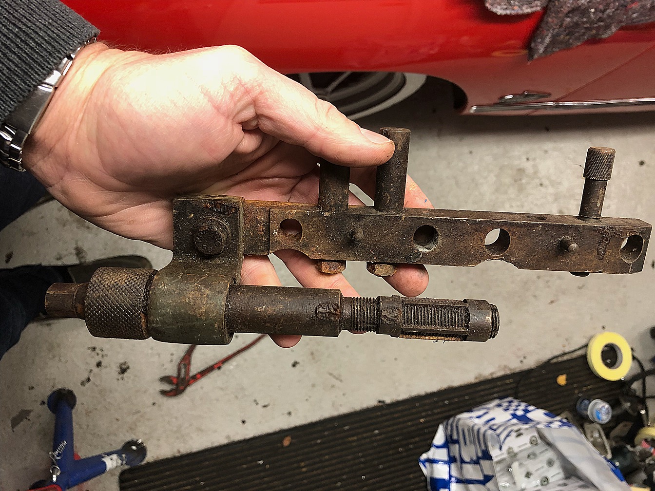 Jag fick några verktyg idag, bl.a. en rigg för att testa startmotorn i. Den är lite kul, har aldrig sett en sån förut. Inte ens på bild.