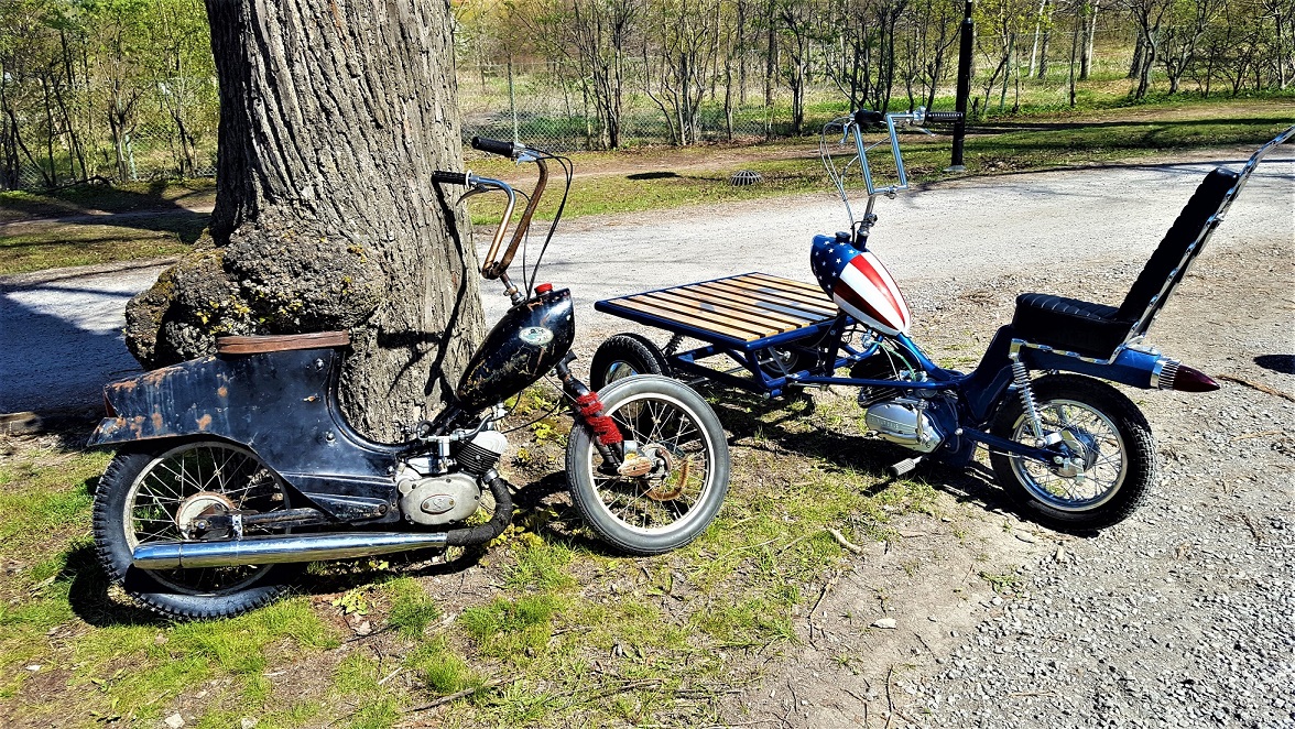 Flakmoppen är ett påkostat & nybyggt custombygge med delar från många olika mopeder bl a Crescent 2000 och raketarsle..