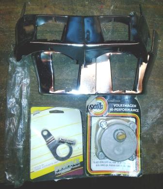 Nya kromade delar, oljesticka, glömplåtar och klämma till fördelare.