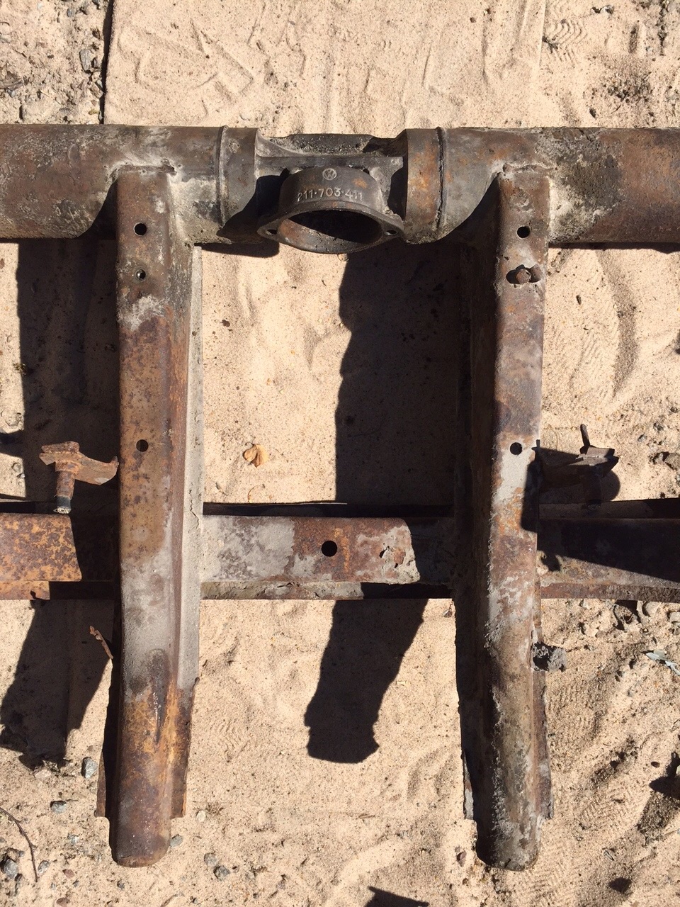 Har en växellådsupphängning till en sen 50-talsbuss över (gamla noskonsuppghängningen)