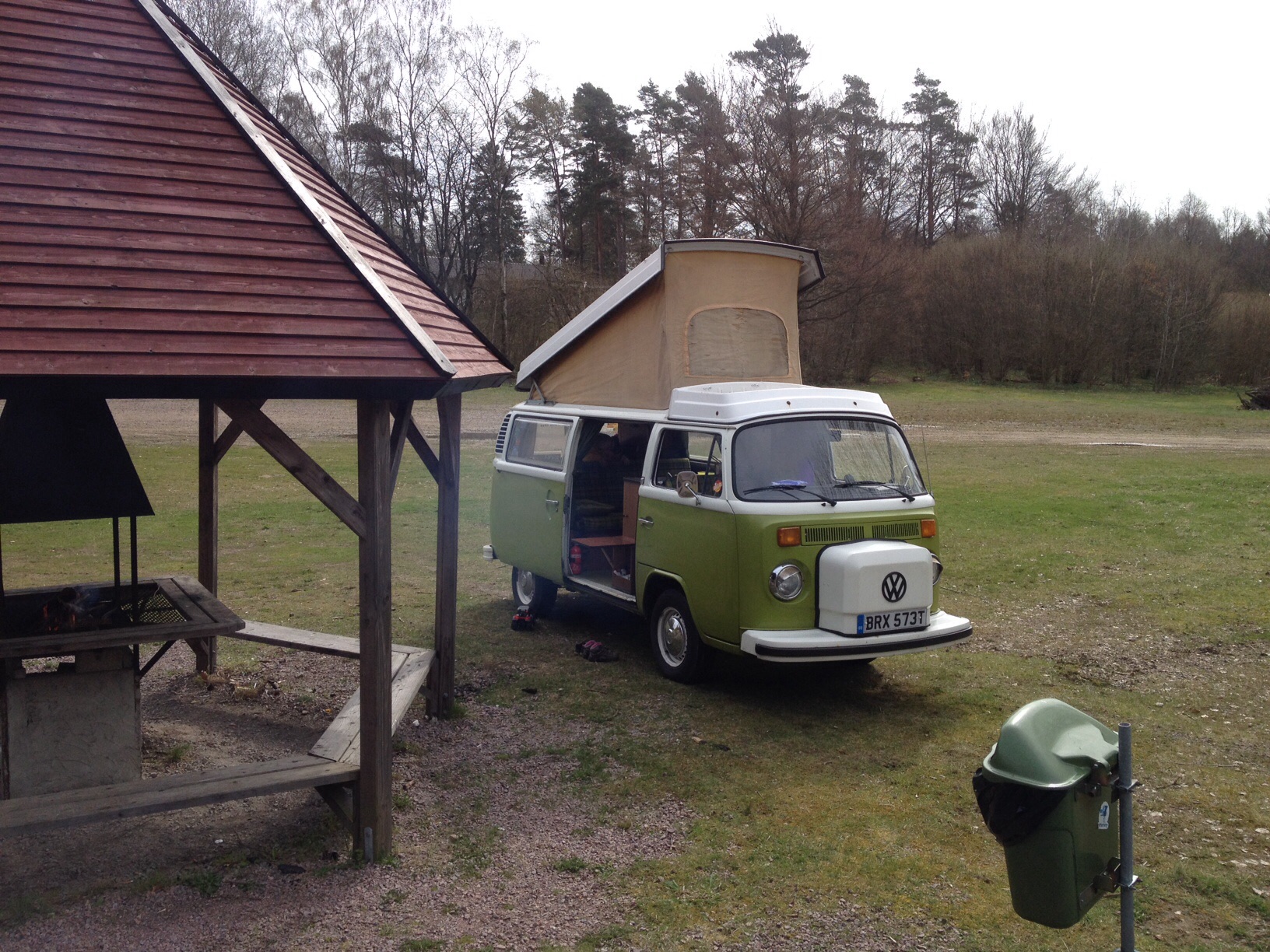 Grillen är under en tak om det regner..
