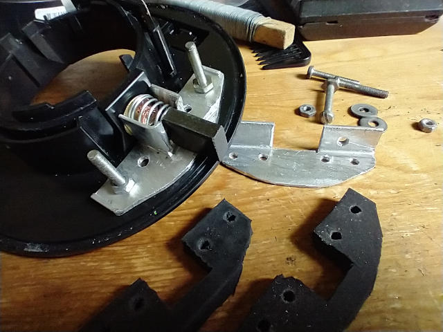 Jobbade med framfjädrarna idag plockade loss gummihållarna som var fasttejpade nånting såg konstigt ut.....