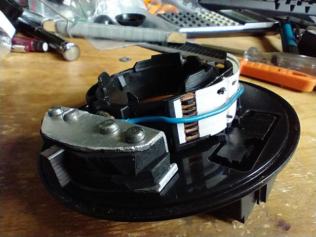 Har nu kontakt som kan snurra runt, vikningen av koppar'n kan kännas när den passeras.