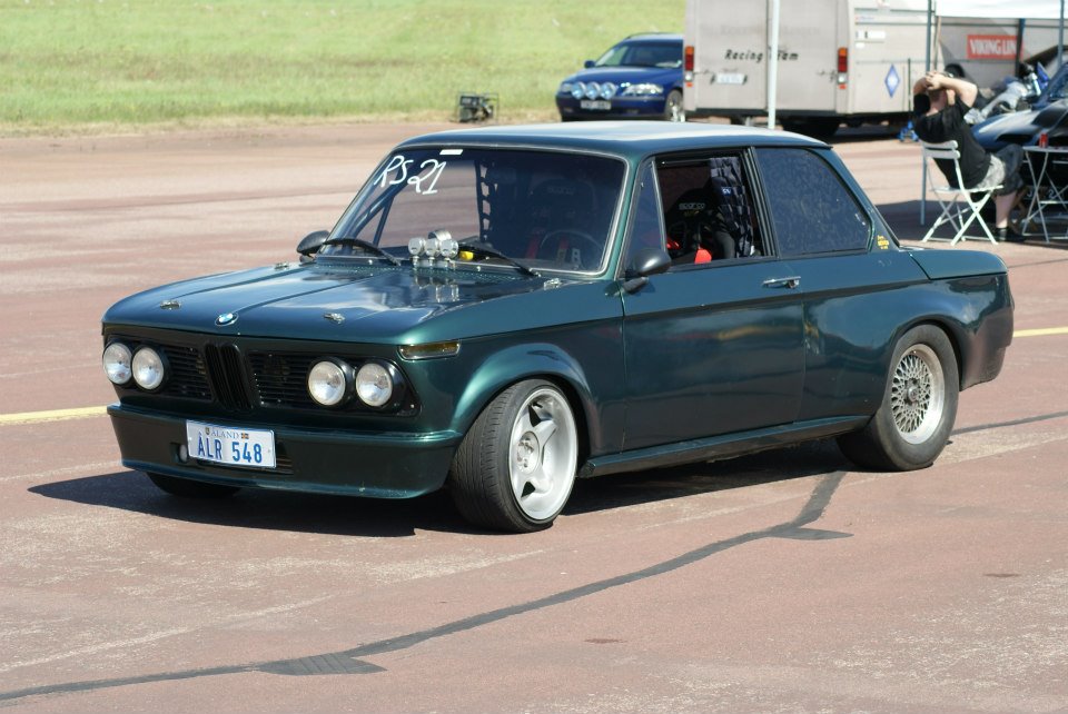 BMW 2002 -68. 2,0L M10 dubbla dellortto 45 och T04 turbo. Fullbur, skålade säten med bälte, fuel cell batteri samt bränslepumpar i skuffen, coilovers, motorhuv framskärmar samt backlucka i plast, plastrutor bak, V-låda med spool o M5 knutar bak. Extra fälgar med slicks medföljer. Framfälgarna på bilderna följer ej med bilen. 285hk vid 1,25 bar boost. Går att köra upp till 2,2 bar och då börjar den verkligen flyga! Den har presterat 11,2 sek på 402m. Bilen är sparsamt körd dom senaste åren men nyligen servad och justerad. För mycket att skriva om bilen så fråga gärna om mera info. Alla förändringar som är gjorda ang motor och kaross är inskrivna och godkänd i registerutdraget. Bilen finns och är besiktad på Åland.