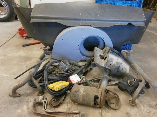 insug- förgasare-12V generator-två st kylplåtar samma sida-std vevlager/kolvbultsbussning-spindel-ventilationsgummin-fläktplåt-dashboardpapp-57a-koffertpapp-57a-handbromsspak-Finns på Orust, 8mil norrGBG.