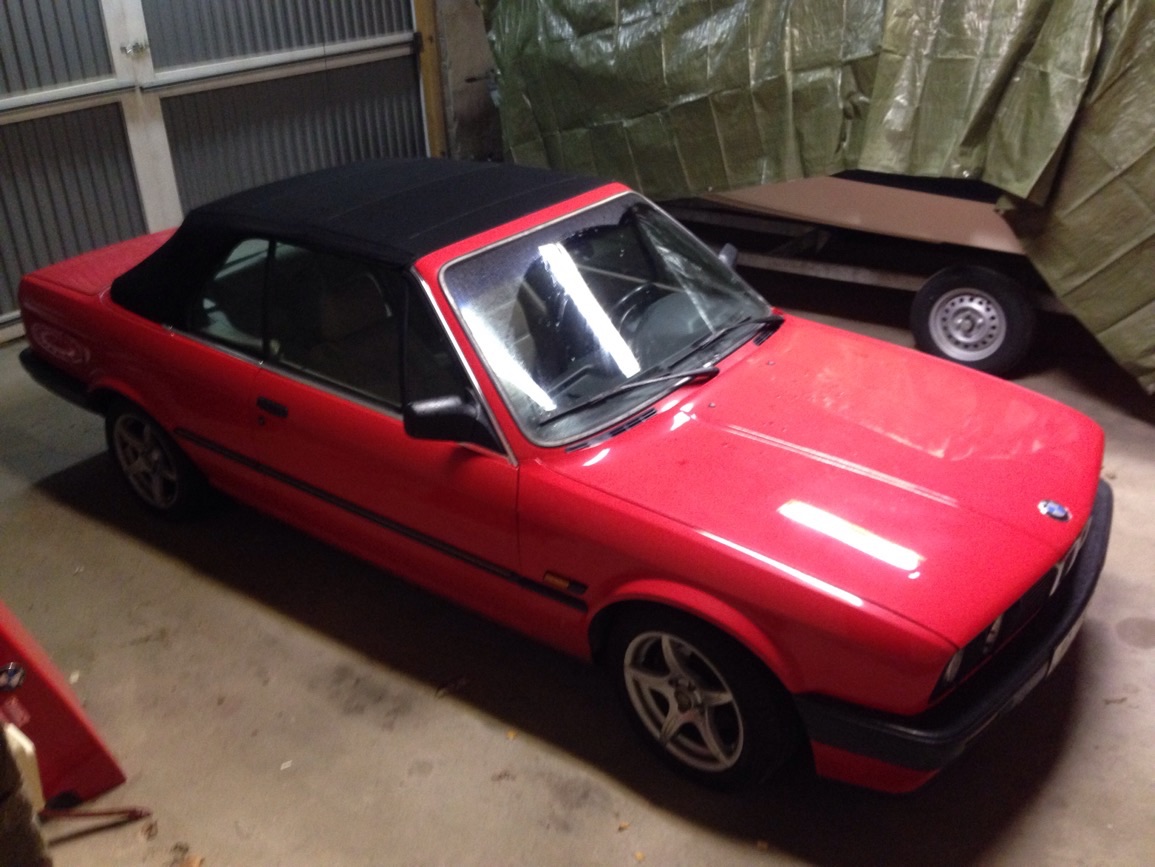 Ja de va de kanske, inte sett fler röda e30 cabbar.. Riktigt skön kille som sålde den i alla fall, prutade med sig själv en slant o skickade med en hel del delar! Tackar, sovit färre timmar denna veckan än vad jag vart i garaget plus att jag jobbat natt så idag tar jag det lugnt  ICQ/ae