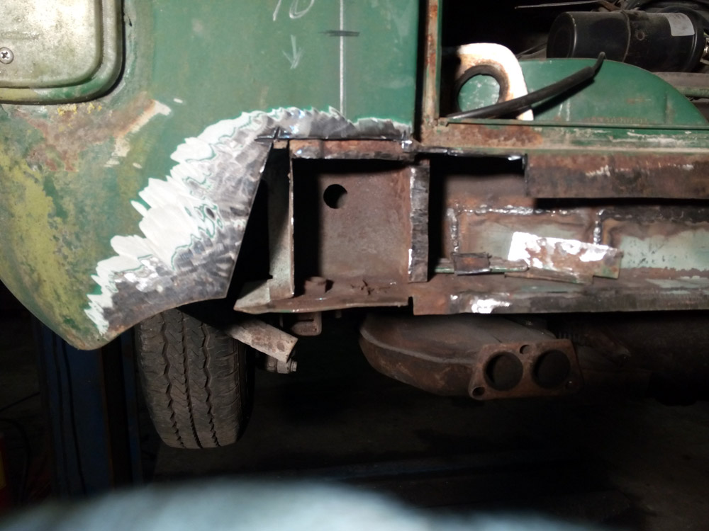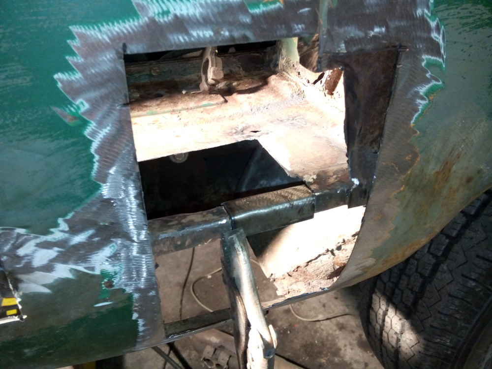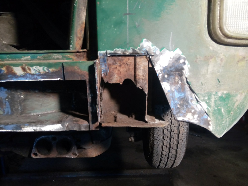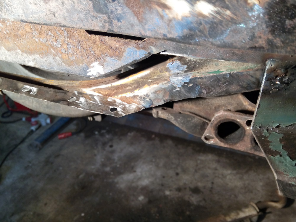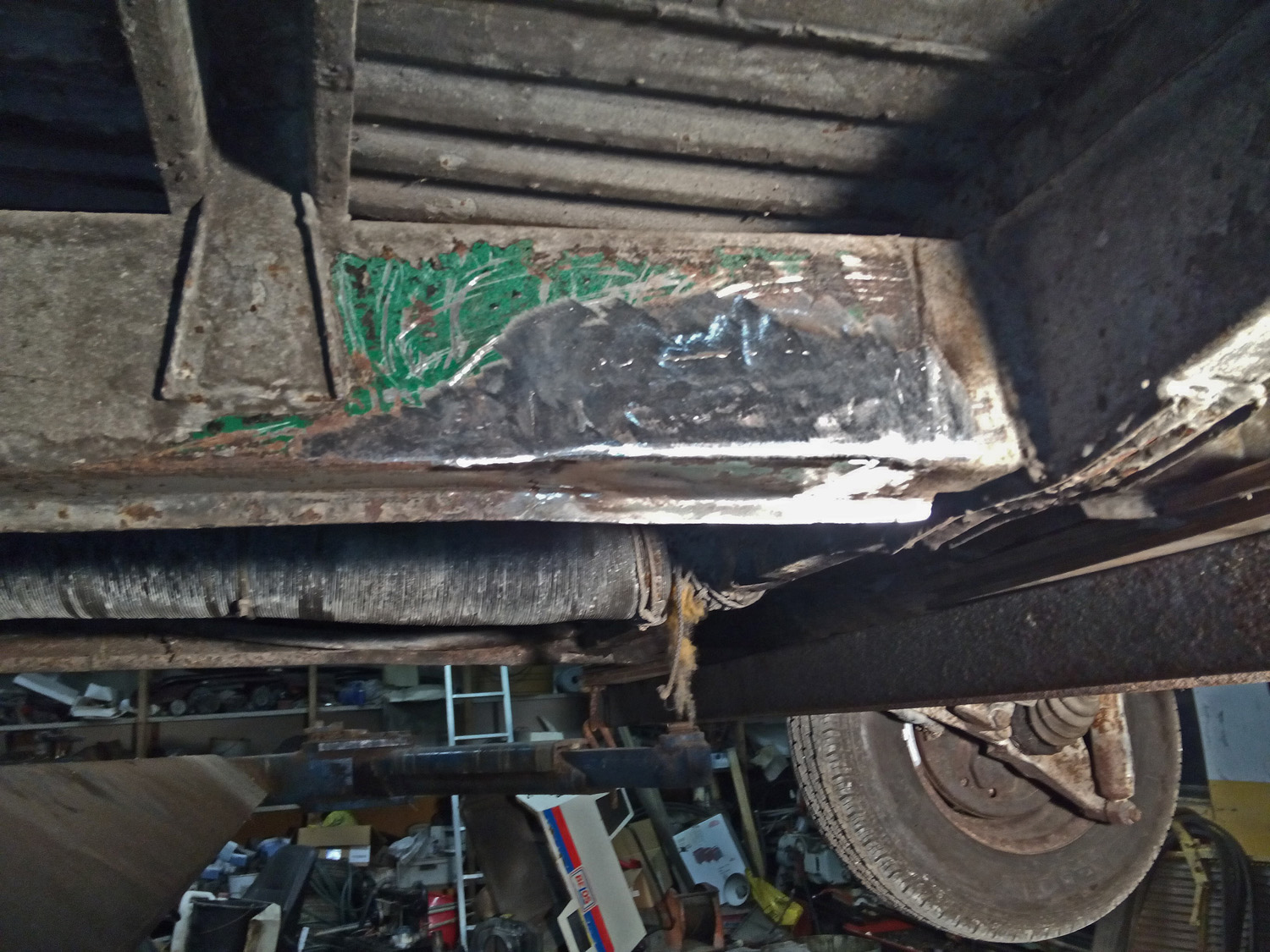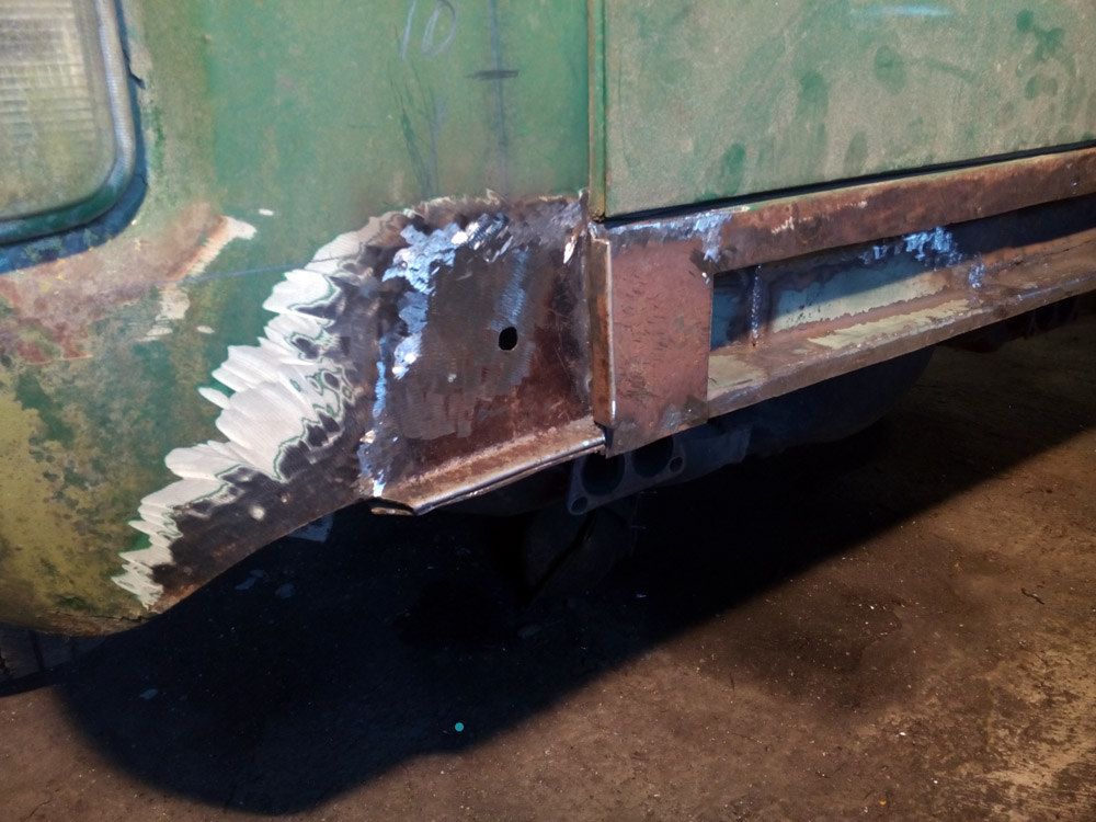 Fick skära bort karosskarven ca 25-30 cm upp då skarven var svullen på insida och helsvetsad på utsida, inte så kul...