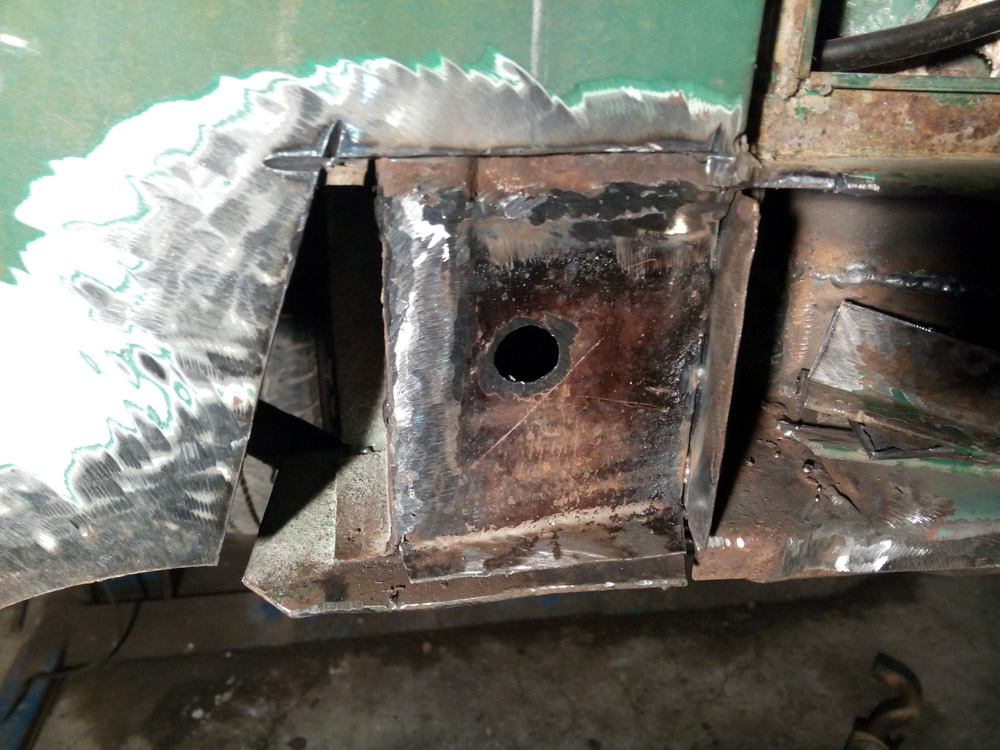 Bakstycke inpassat, lite ytrostig plåt (man tager vad man...) men den skall såklart slipas ren alt. blästras, insidan oljesprutas