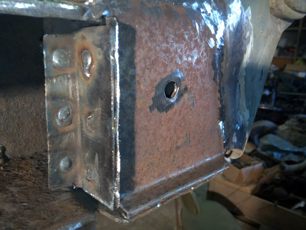 byggde upp de inre plåtarna som jag tror de såg ut... inte mycket kvar att gå efter. Hålet antar jag är för att komma åt att spruta rostskydd? Så det återskapade jag också.