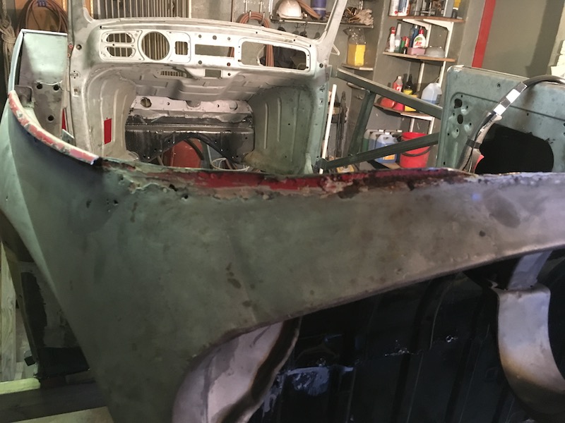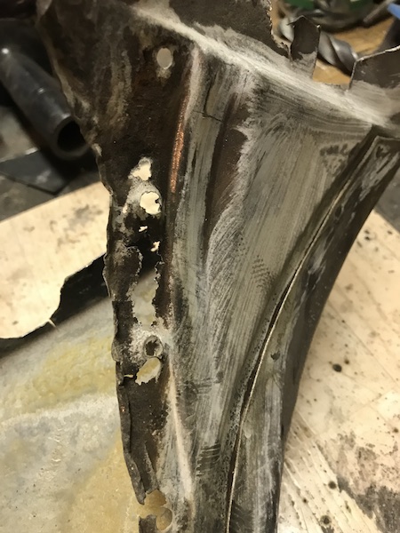 Skurit bort lite dålig plåt, börjat fixa gamla dåliga lagningar (mina) och mallat lite.