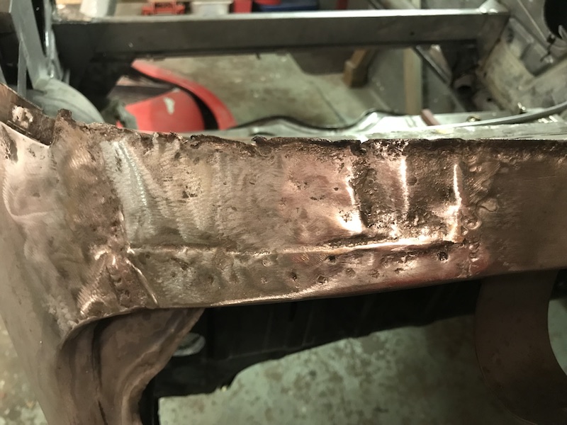 Inga stora slagningar i plåten dock enen liten ås efter svetsen.