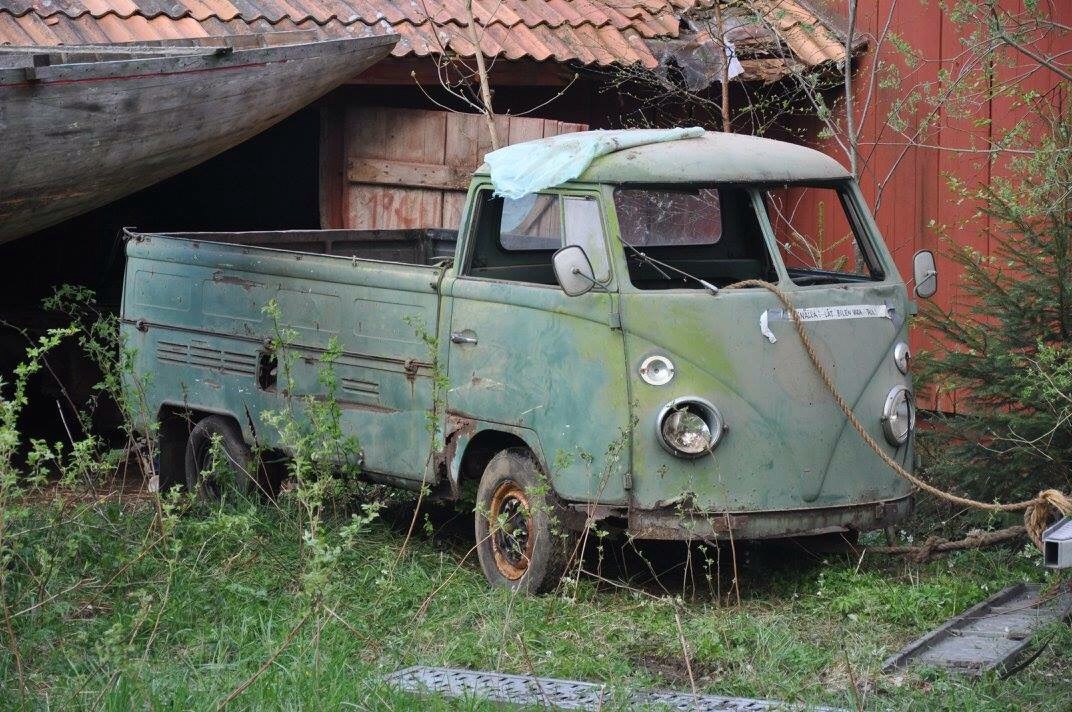 Han byggde en friggebod på tomten där den stod i många år, de var inte vatten värda då. Jag är glad idag att han sparade den!!! Vandalerna snodde också motorn från bubblan -66 och hoppade in taket... Pickupmotorn släpade de ut över taket på pickupen. De lämnade den sällsynta luftrenaren, måste ha varit bubblafolk..